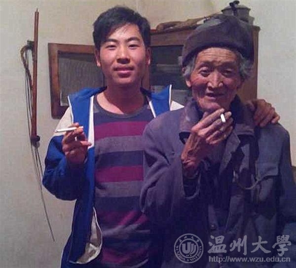 “和外公拍了这张照片,才突然发现外公真的老了好多。小时候放寒暑假我常去他家,那时外公六十几岁,我上中学到现在,就很少的时间去看他了,外公的背明显比记忆里的佝偻了许多。”照片中的陈同学说,“这次寒假,借着班委布置的这项任务,我特地给外公多拍了些照片。照片里,我们白天干活的衣服还没脱,虽显土气但很真实。”