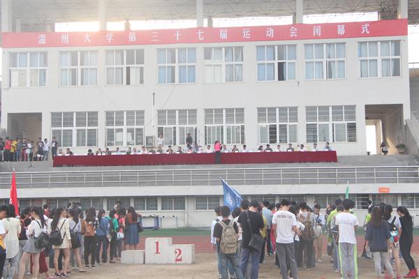2014年10月31日下午,温州大学第三十七届运动会田径比赛闭幕式在南校区操场举行。校领导林娟娟、蔡曙光、潘玉驹,相关部门、学院负责人以及师生代表出席了闭幕式。副校长薛伟主持闭幕式。