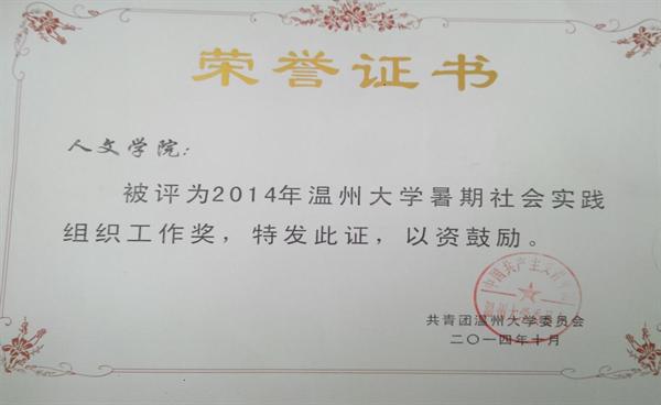 “文化旅人”暑期社会实践队和“五水共治问水乐清”暑期社会实践队获得了市级“优秀团队”。“鼓动词迹”实践队获校策划大赛一等奖,“廊桥遗梦”实践队获校策划大赛三等奖,这两只实践队同时也获得了校级“优秀团队”的殊荣。在实践过程中,球探体育