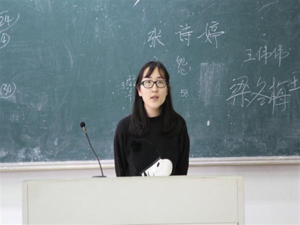 本次会议的第三个环节是经验交流。张典雅同学作为班里学习成绩的第一名,就上课笔记和考前复习两大方面与同学们分享了她的学习经验。王梦俐同学跟大家分享了她如何协调工作与学习这一问题——学习上要博览群书,工作上要认真负责。514寝室长黄芯蕊同学向大家介绍了她们寝室是如何做到团结、亲密的。