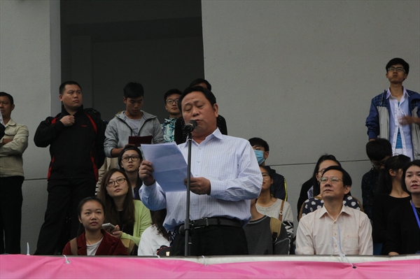 2015年10月29日上午8点半,温州大学第三十八届运动会田径比赛开幕式在温州大学北校区操场隆重举行。温州大学校领导陈福生、林娟娟、牟德刚、吴金法、黄少铭等领导及有关部门负责人、各学院负责人出席了开幕式。开幕式由副校长薛伟主持。