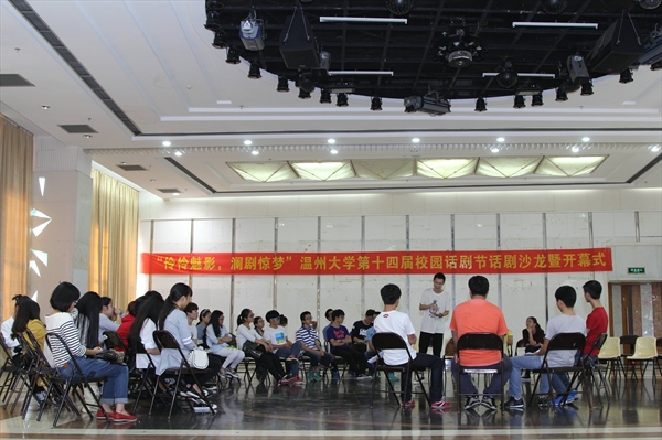 2015年11月7日14点,温州大学第十四届校园话剧节话剧沙龙暨开幕式在大学生活动中心A座三楼多功能厅举行。特邀嘉宾尤舜老师,球探体育