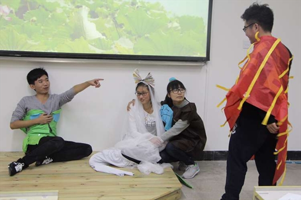 情景剧表演,博得了满堂喝彩。每个小组分别阐释了设计理念以及灵感来源,大家将身边的