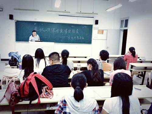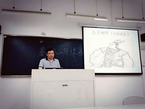 年5月24日晚6点半,温州大学古典文学教研室主任张一平教授在人文楼409教室为球探体育 古代文学专业同学做了题为《春秋·阴谋与爱情的较量》的主题讲座,二十余名同学聆听了本次讲座。