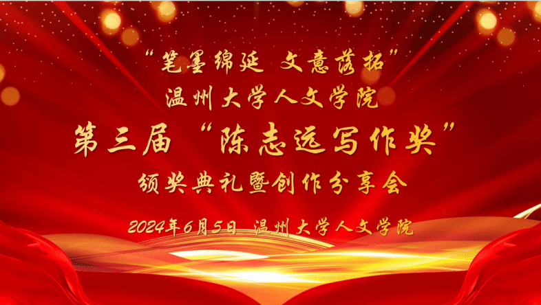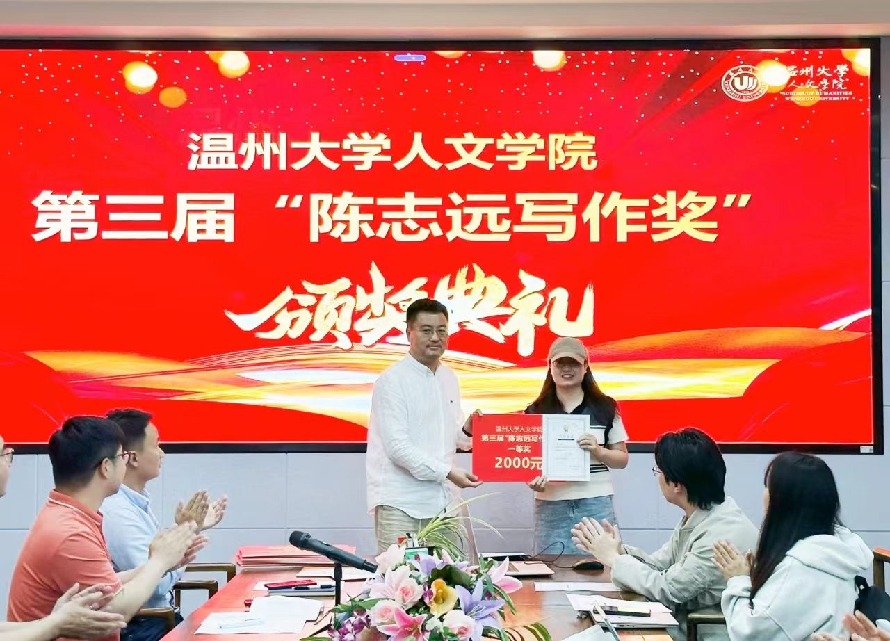 笔墨绵延,文意落拓!为表彰球探体育 中积极创作和发表的同学,华侨企业家陈志远先生设立了写作奖以激励更多的学生将文学的火种传递下去。2024年6月5日,第三届“陈志远写作奖”颁奖典礼暨创作分享会在温州大学人文楼浙江戏曲基地125室举行。会议由李广旭老师主持,参会嘉宾有孙良好、江秀景、魏一、俞磊、申业磊、刘卫东等老师,到场的还有获奖同学及来自温州大学文字作坊、九山诗社、栖风文学社的同学。