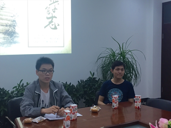 两位成功考取博士的2013级毕业生王辉、郑晓锋莅临现场向20余位与会同学分享了自己的考博经验,本次活动由学术部部长叶桦畅主持。