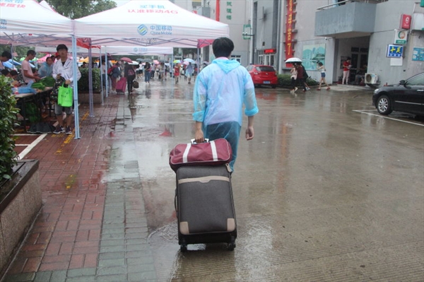 天公不作美,哗啦啦的大雨从清晨开始且丝毫没有停下的趋势。但阴雨绵绵的天气并不能阻碍我们迎新的热情,磅礴的大雨中,那一道道粉红色的身影显得格外耀眼。穿着统一院服的团学成员或是守在门口,一看到搬着沉重行李的新生和家长就立马上前帮忙;或是在迎新处静静等待,对一批又一批满怀期待的新生致以最真挚的欢迎;或是举起相机,记录下新生们与温州大学初遇的美好瞬间。他们穿梭于冰冷的大雨中,不知疲倦般一次又一次地搬运行李,一遍又一遍为新生介绍指路,即使被雨水打湿衣襟和裤脚也毫不在意。天色渐晚,随着最后一个新生注册完毕,球探体育