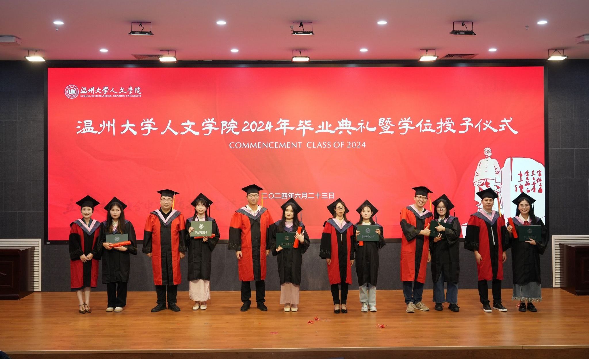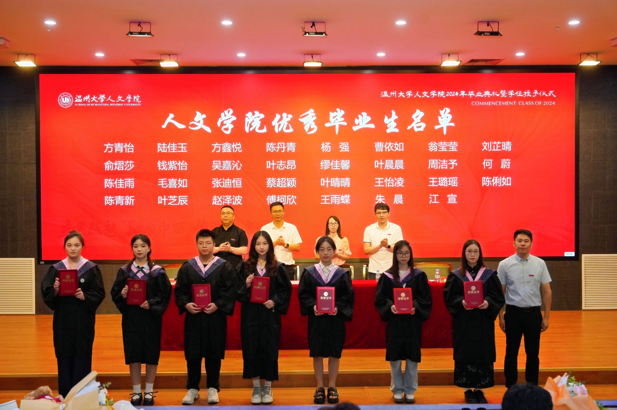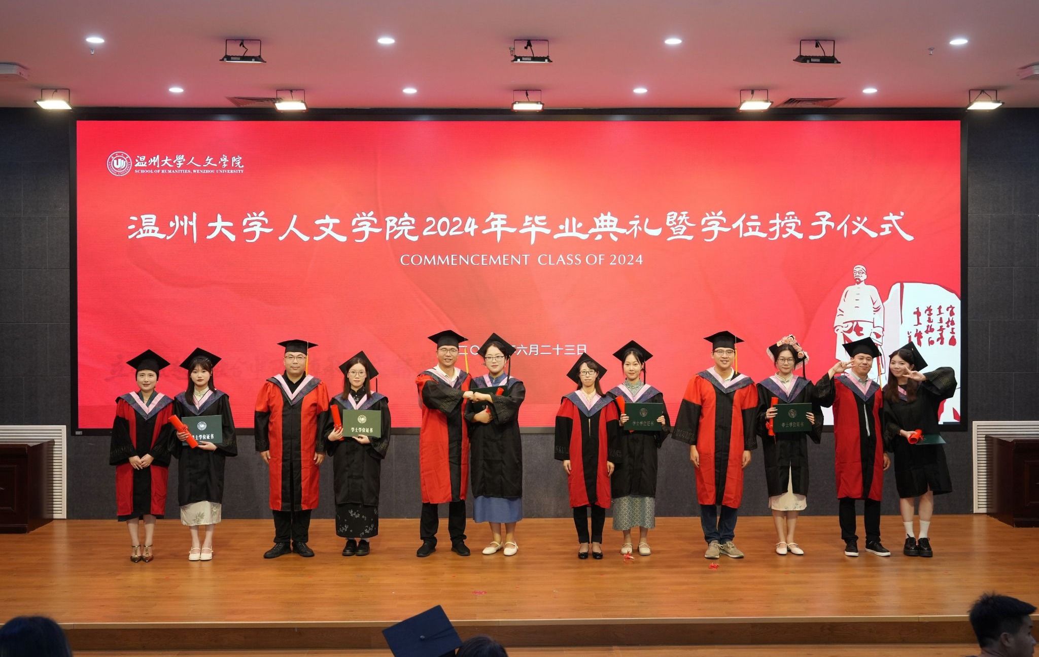 岁月不居,时节如流。6月23日上午9:30,温州大学球探体育 2024年毕业典礼暨学位授予仪式于南校岩松堂步青厅顺利举行。球探体育 党委书记江秀景、副院长陈源源、党委副书记黄玮、副院长张真、副院长陈鸿超、中文系主任鲍良兵、各毕业班班主任、研究生导师代表、教师代表、校友代表、家长代表、学院辅导员以及全体2024届毕业生参加。仪式由院党委副书记黄玮主持。