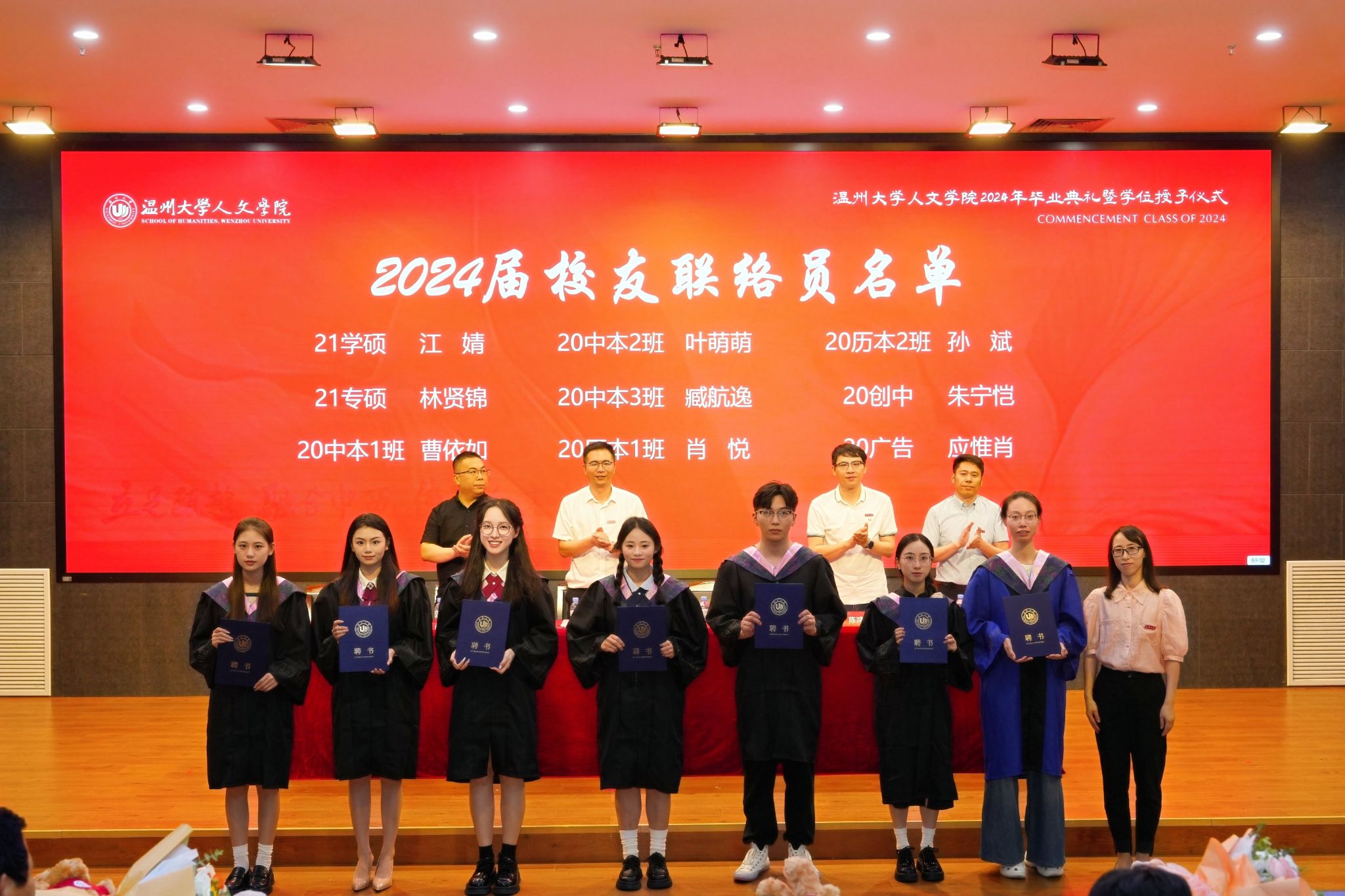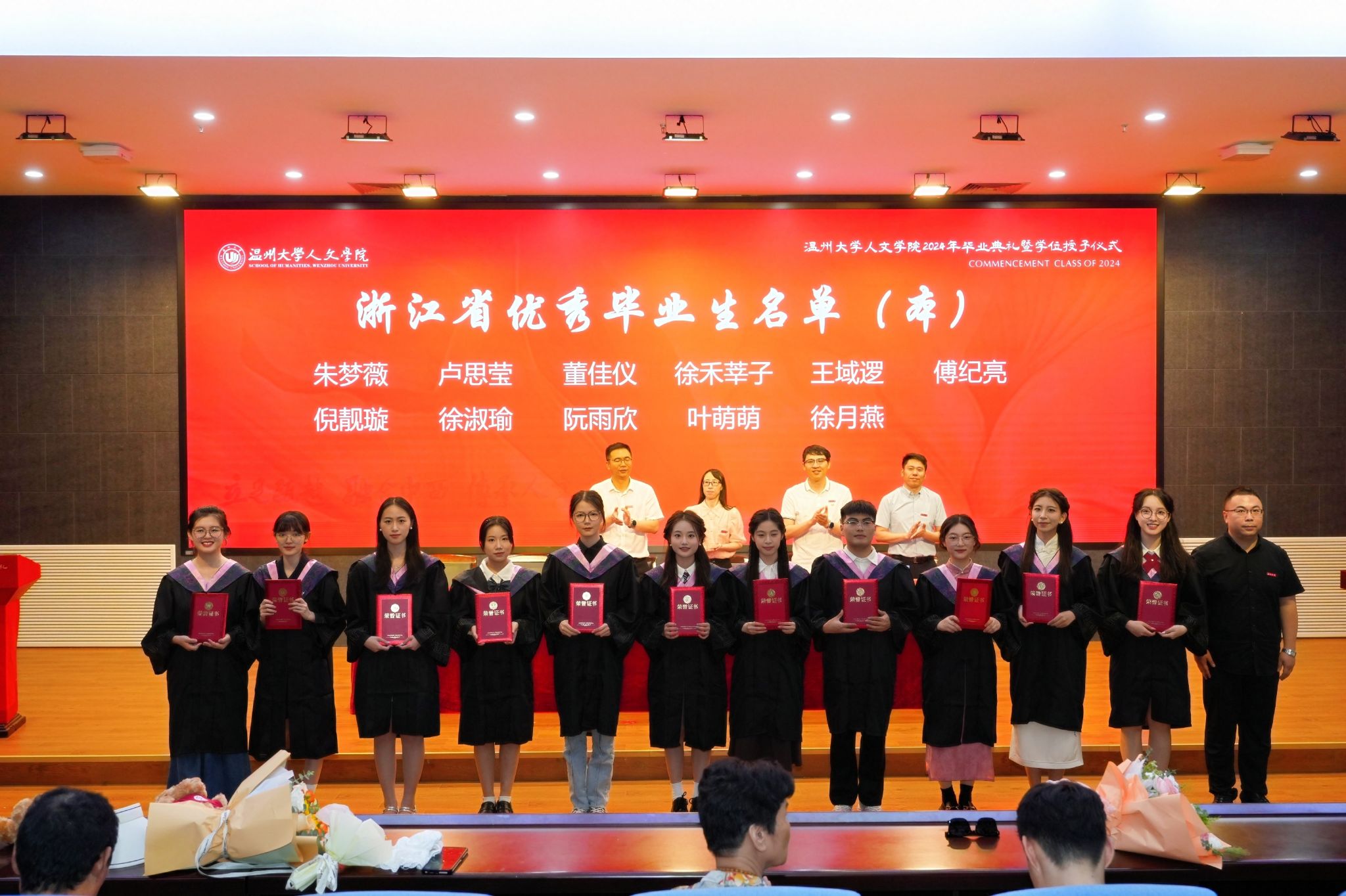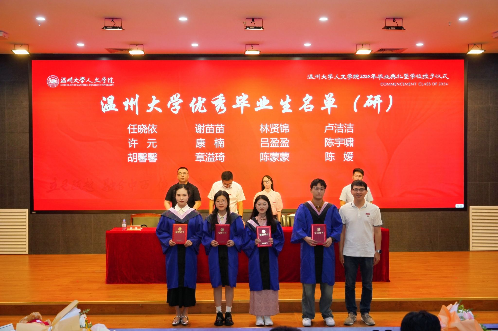岁月不居,时节如流。6月23日上午9:30,温州大学球探体育 2024年毕业典礼暨学位授予仪式于南校岩松堂步青厅顺利举行。球探体育 党委书记江秀景、副院长陈源源、党委副书记黄玮、副院长张真、副院长陈鸿超、中文系主任鲍良兵、各毕业班班主任、研究生导师代表、教师代表、校友代表、家长代表、学院辅导员以及全体2024届毕业生参加。仪式由院党委副书记黄玮主持。