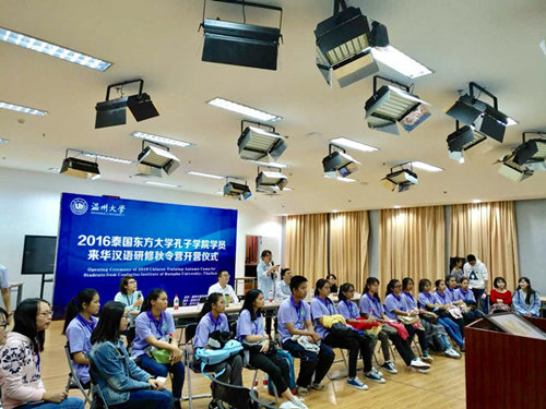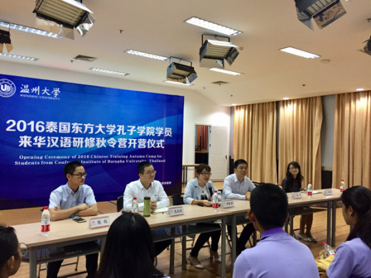 副书记朱启鑫、温州大学国际合作学院副院长陈军、泰国东方大学孔子学院院长章毓林出席开营仪式并发表讲话,出席开营仪式的还有温州大学外事处老师、14位泰国学子以及全体志愿者。