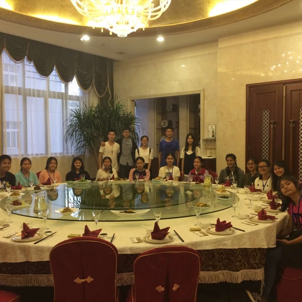 负责同学带领泰国学员夜游南塘街。“水行御舻,陆行蹑踵”,夜晚的南塘街更为淡雅流华。坐在船头,可以看见墨色的河水,泛起层层粼光,岸上行人喧喧,江中月影沉沉,相得益彰。各有远处高楼的霓虹灯,衬托着南塘街的繁华与美好。船渐渐靠岸,泰国学生们的心也仿佛要被拴在作为异乡的中国了。