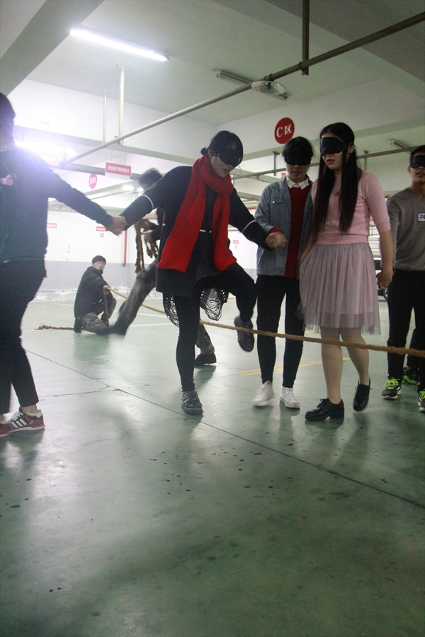 在简单愉快的热身小游戏之后,飞行部落培训师对干事们进行随机分队。紧接着,在各队培训师的带领下,开始了限时的海报制作,其中包括设计队名、队徽、队歌及口号等。在新选的队长的组织下,队员们都开动头脑,全身心地投入其中。随后,便是各队风采展示,气氛热烈,创意无限,掌声不断。接下来,进入的是激动人心的游戏环节。首先是“过电网”游戏,干事们从刚开始的生疏与状况不断,逐渐地结合个人与团队的力量成功穿越“电网”。每一次成功跨越,都伴随着大家自豪的欢呼。在这个游戏结束后,培训师和干事们交流了感想。团结、遵守规则的意识深刻地烙印在每个人的心中。然后,又开展了“盲阵”游戏,在黑暗的世界里,团学人互相支持与帮助。经过这个游戏,大家深刻理解了责任、信任及倾听的重要性。最后,飞行部落培训师对本次活动进行总结,各位干事们也回味着过程,体会着感悟。最后在集体拍照留念后,圆满地结束了本次活动。