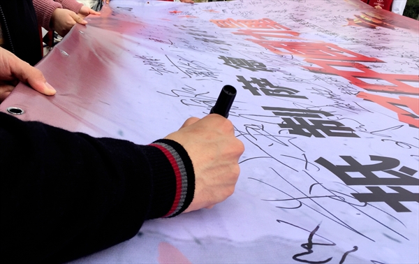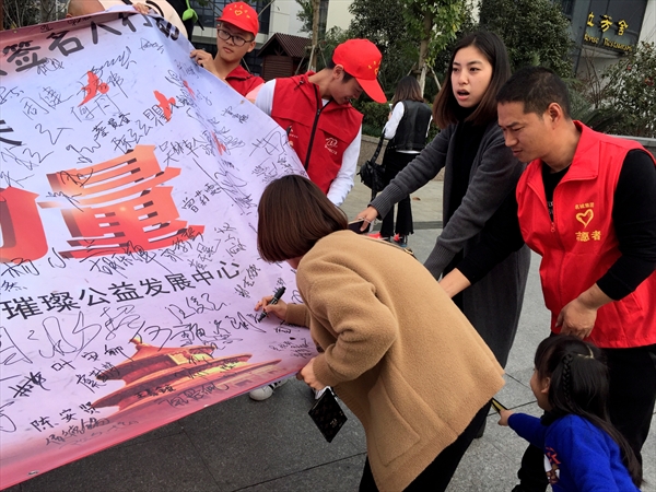 2017年3月5日11:50,志愿者们在公交始发站集合完毕,前往活动地点。在12:50到达活动地点白鹿洲公园,,待所有志愿者们到达场地后,活动负责人为各志愿者拍摄合影后,便将志愿者服务队分单位安排进行公园环保整治及马路交通疏导等。13:10,志愿者到达指点地点进行交通疏导,制止行人闯红灯、机动车逆向行驶等行为,让马路更加的通畅,让行人的安全得到进一步的保障,一辆辆车驶过,一个个人走过,志愿者们耐心的提醒行人遵守交通规则,保障人身安全。14:30志愿者们结束交通疏导活动,返回集结地稍作休整,于15:00开始下一项活动——“抵制乐天,抵制萨德。”万人签字活动。志愿者们拿着签字幕布开始沿街向路人介绍这次万人签字活动以及抵制乐天的意义,引导路人树立爱国意识,团结起来一起抵制乐天,抵制韩货,维护国家利益,促进民族团结。经过一个小时的时间,几米长的幕布已被一个又一个爱国者的名字写的满满的。16:00志愿者们返回集结地,同温州爱心微公益组织做完活动最后的交接工作,将万人签字幕布挂起后,16:20活动圆满结束。