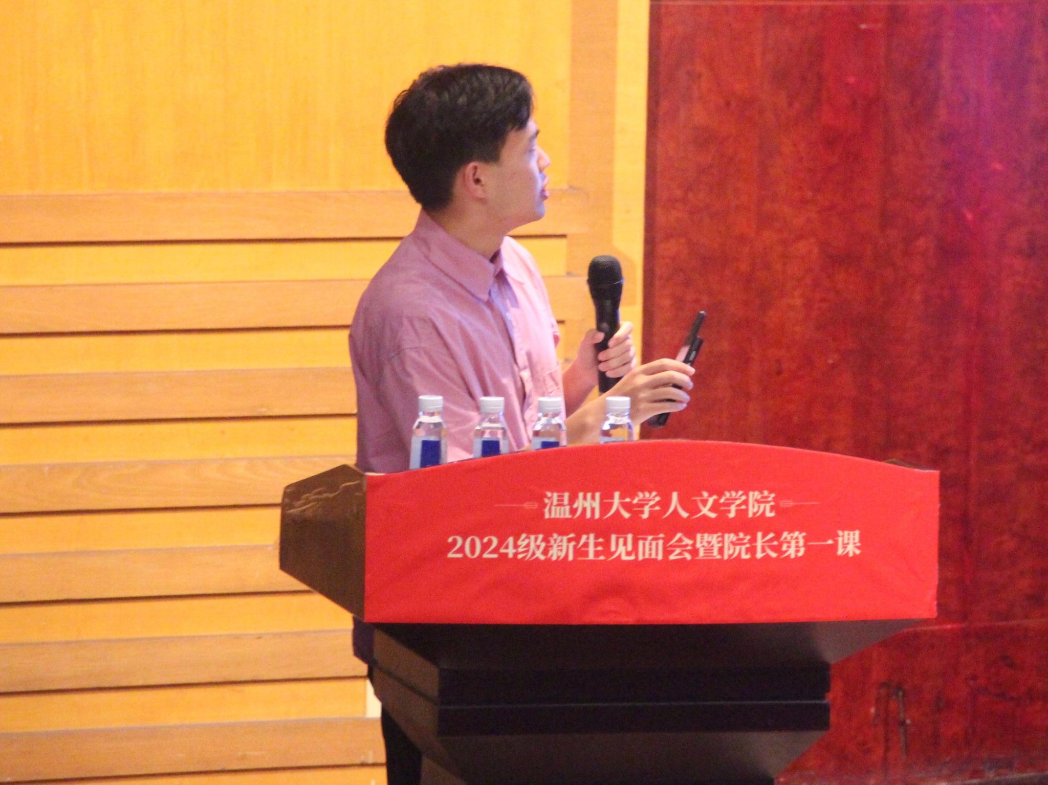 首先是由球探体育 团委·学生会团委副书记顾时雨为新生们讲解人文团学各个部门的职能与职责所在。作为学院和学生间沟通交流的桥梁和纽带,人文团学秉持着服务全院学生的宗旨,将各项工作落实到位。