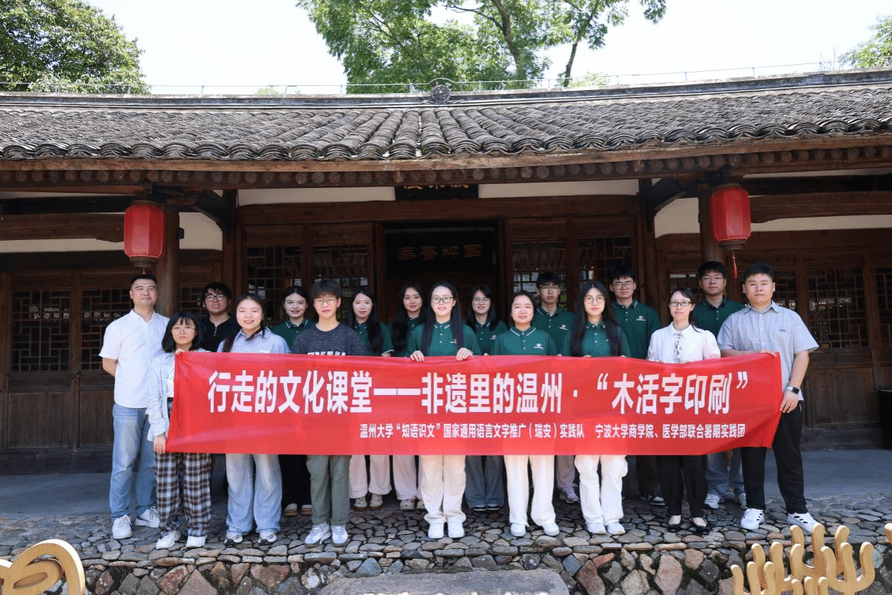 2025年7月14日,温州大学“知语识文”国家通用语言文字推广(瑞安)实践队携手宁波大学商学院、医学部的师生代表,走进瑞安东源村,以国家级非物质文化遗产木活字印刷术为实践载体,在推广国家通用语言文字的过程中,共同感受汉字文化的深厚底蕴。
