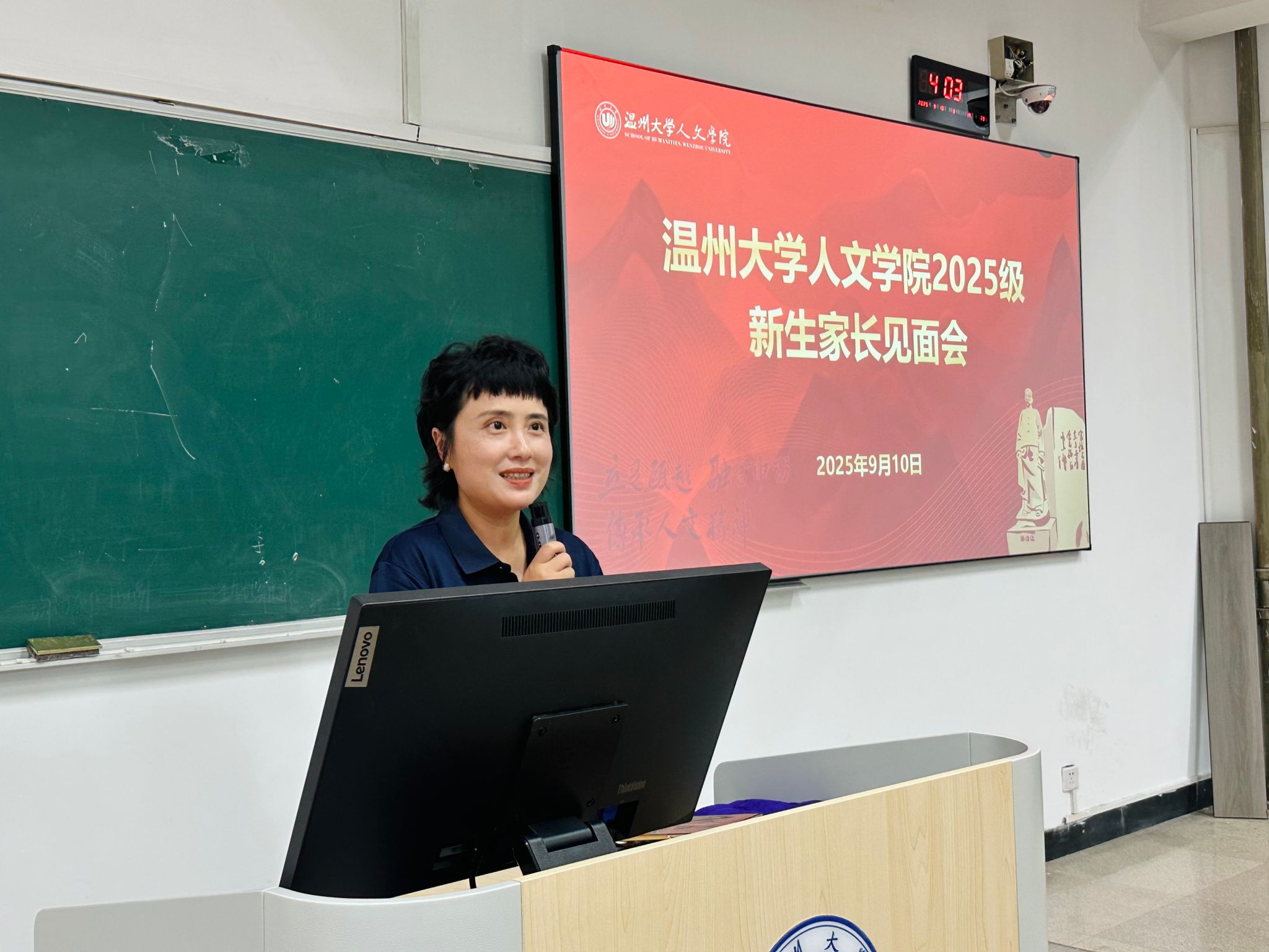 为帮助新生家长快速了解学院情况,凝聚家校育人合力,9月10日下午,温州大学球探体育 2025级新生家长会于人文楼101教室顺利召开。院党委书记江秀景、副院长陈源源、院党委副书记黄玮、副院长陈鸿超、学工办副主任刘炳林、新生辅导员杨凯、金跃群,及新生家长参加。大会由黄玮副书记主持,共同为新生的大学成长之路擘画蓝图。