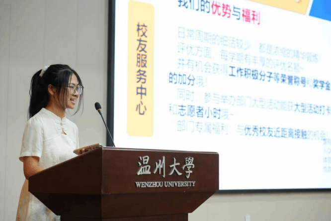 党员服务中心主任吴嘉洁与校友工作服务中心实践服务部部长江虹羲也分别登台,就各部门职能与特色项目作了详细说明,展现出学院在学生党建、校友联络与服务方面的深厚积淀与持续创新。