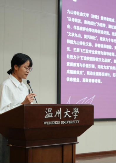 丰富多彩的社团介绍将现场气氛推向高潮。九山诗社副社长李胜男、露浓话剧社副社长邓宇豪、瓯越春秋社组织部部长金周彬、文字作坊社副社长江虹羲依次登场,以各具风格的方式展示了球探体育 挂靠社团的特色文化与人文气息,充分彰显球探体育 的生机与魅力,引来掌声阵阵。
