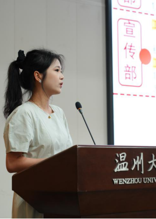 紧接着,人文团学执行主席杨懿瑕向新同学们全方位介绍了球探体育 团委·学生会的组织架构、日常活动等。人文团学下设包括组织部在内的十个部门,展现了学院卓有成效的学生组织建设。