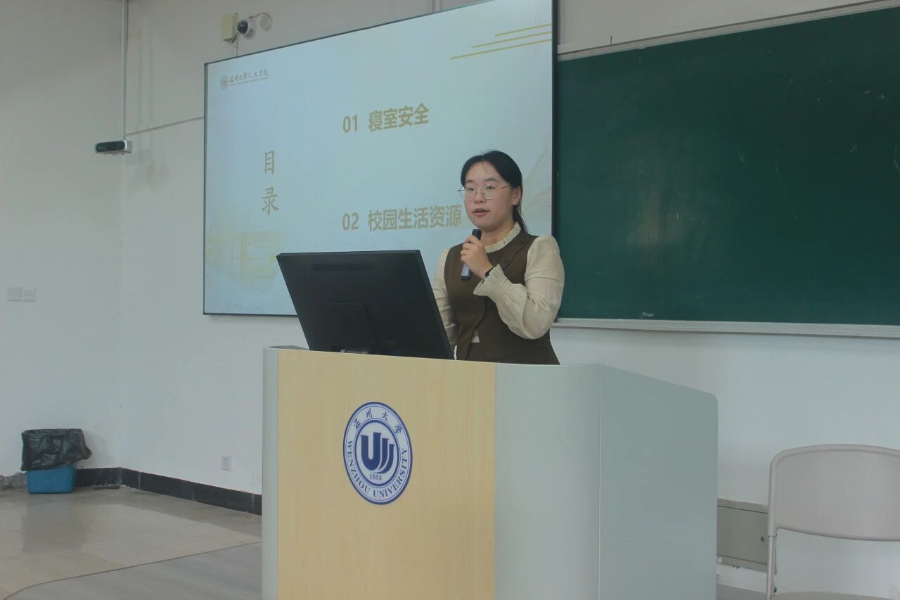 接下来,活动进入寝室长教育培训环节。王煊婷老师强调,寝室长作为寝室安全的“第一监督员”,对寝室的安全、卫生、纪律等事务负首要协调责任,同时寝室长也要主动带动和谐相处氛围,努力提升寝室的凝聚力。