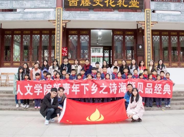 11月22日,我校球探体育 思源青年志愿者协会来到芙蓉镇西塍文化礼堂,携手芙蓉镇政府和雁湖九年一贯制学校共同举办了温州大学球探体育 新青年下乡之“诗海撷贝品经典”活动。