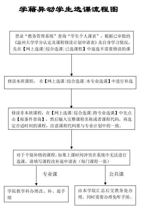 学籍异动学生选课流程图
