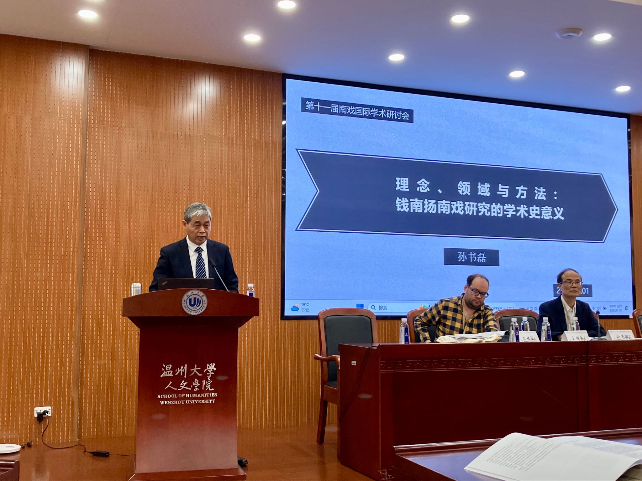 开幕式后,由温州大学文科资深教授俞为民教授主持本届大会主题发言,南京大学孙书磊教授与悉尼大学Josh Stenberg教授(中文名:石峻山)先后作主题报告,题目分别为《理念、领域与方法:钱南扬南戏研究的学术史意义》和《联邦到二战的澳华戏剧》。