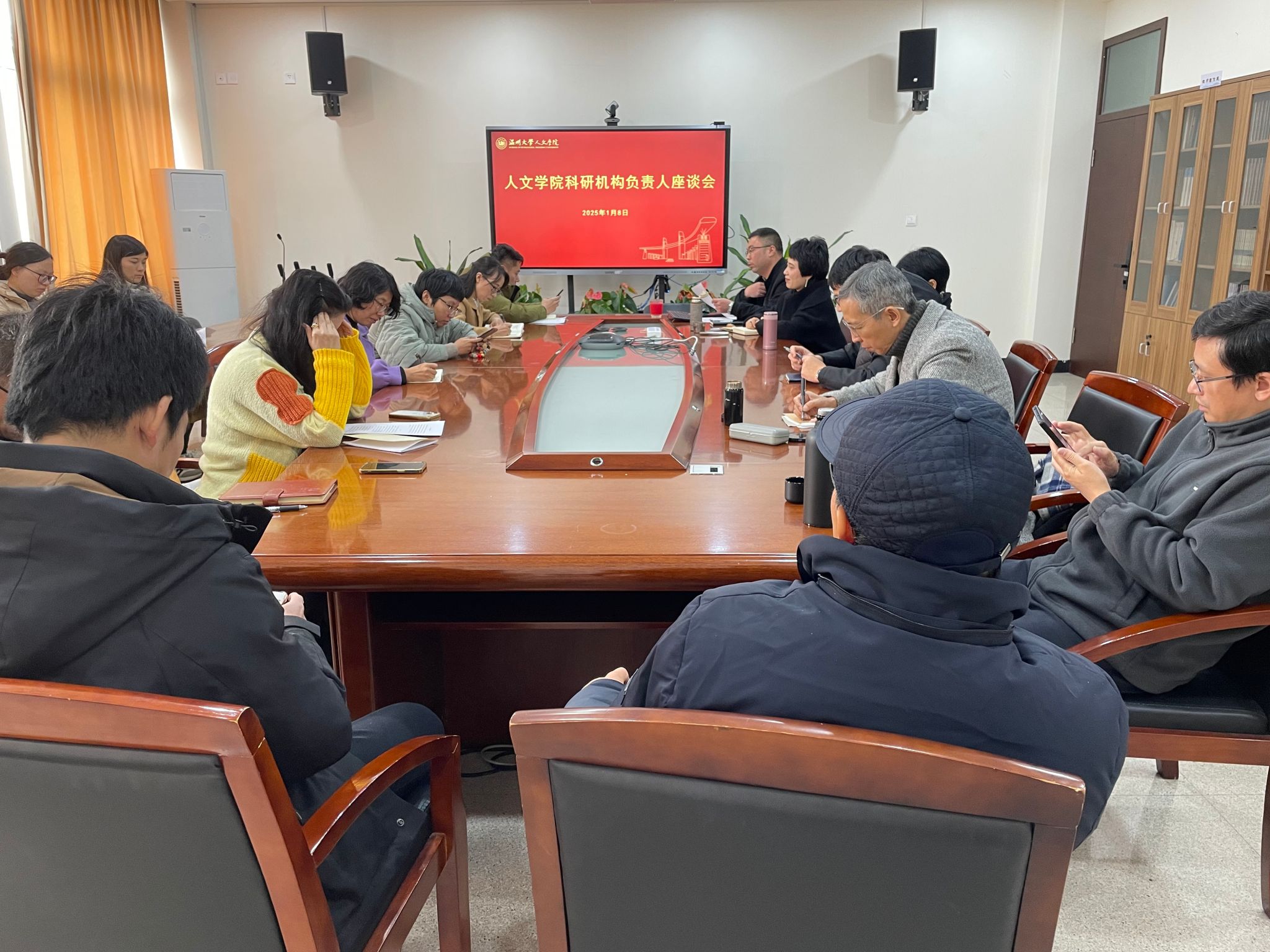 各研究机构负责人详细介绍了所在研究机构论文专著发表出版情况,获得市厅级以上纵向项目及横向项目,外出学术交流、举办学术会议等方面的总体情况;展示了为服务地方所做的贡献,并梳理了目前面临的主要问题。
