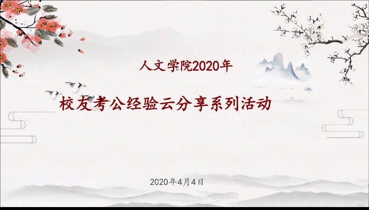为了帮助同学们更好地备考公务员考试,球探体育 于2020年4月4日19:00开展了校友考公经验云分享活动,这也是2020年校友考编考公经验云分享的最后一期活动。院学工办主任刘纪峰、辅导员李丹萍、两位分享校友和部分有意向考公的学生参加了此次活动。