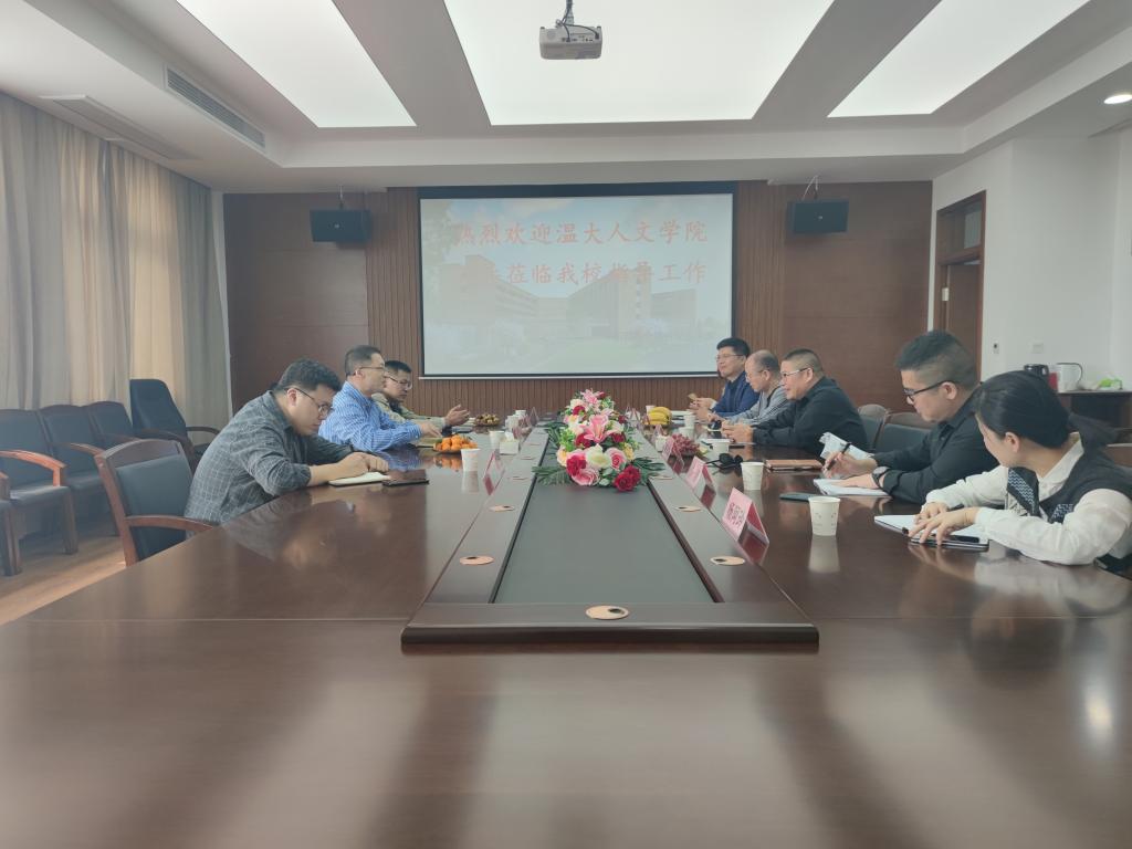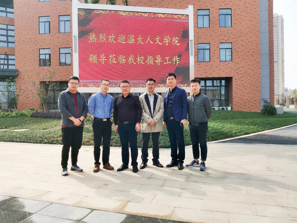 为加强校企合作,拓宽毕业生就业渠道,了解就业市场需求,加强学院与社会的联系、促进学院与校友更好合作,共同发展。11月3日上午,球探体育 党委副书记魏一、历史系学科带头人刘建国教授以及辅导员胡震鹏、申业磊一行来到平阳县万全教育集团拜访董事长即球探体育 杰出校友陈孝杰。