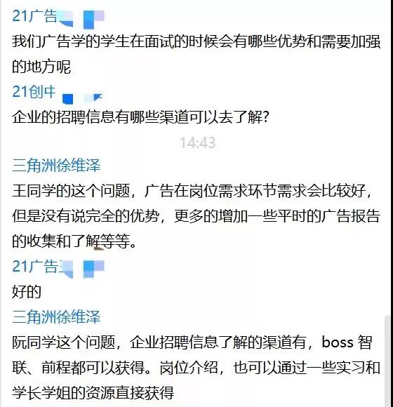分享接近尾声,同学们针对专业、职业等方面提出自己的疑问,进行了线上答疑和探讨。经过本次分享,同学们更清晰地认识到了职业生涯规划的重要性。提前做好个人职业生涯规划,制定前进目标,方能君志所向,一往如前。