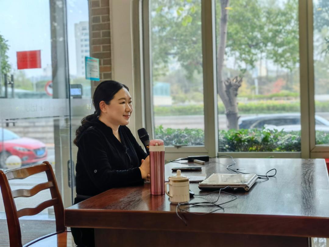 这场讲座在阳光明媚的深秋午后拉开帷幕,蒋胜男微笑着走进市民书房,温婉知性,落落大方。
