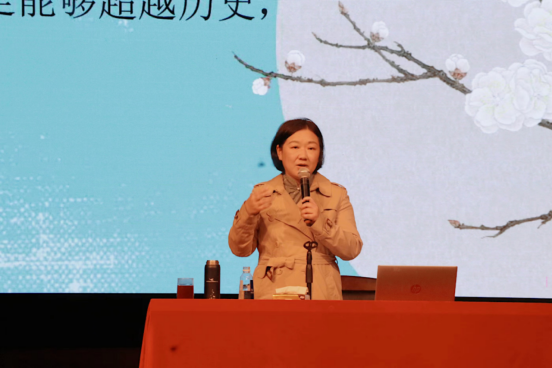 课堂上,蒋胜男从《燕云台》谈起,结合自身的职业成长经历为在场的师生们讲述《芈月传》创作的过程,分享了自己文学创作的心路历程,并谈到历史小说的写作意义,为我们展现了中国先秦、辽宋时期的历史文化、思想争鸣。在蒋胜男看来,当人类站在历史和命运的十字路口,其实并没有绝对的正确就能成功,但以史为鉴,能得到不少有价值的经验和思考。而研读者能提供的,就是给这个世界更多的案例和解读方式,提供给下一个十字路口的人们,让他们有更多案例可选择。她说:“我们常说‘以史为鉴’,历史其实就像一面镜子,能够照出人类曾经所有的困惑、痛苦。这些情感是共通的,是能够超越历史,映照当下的。”