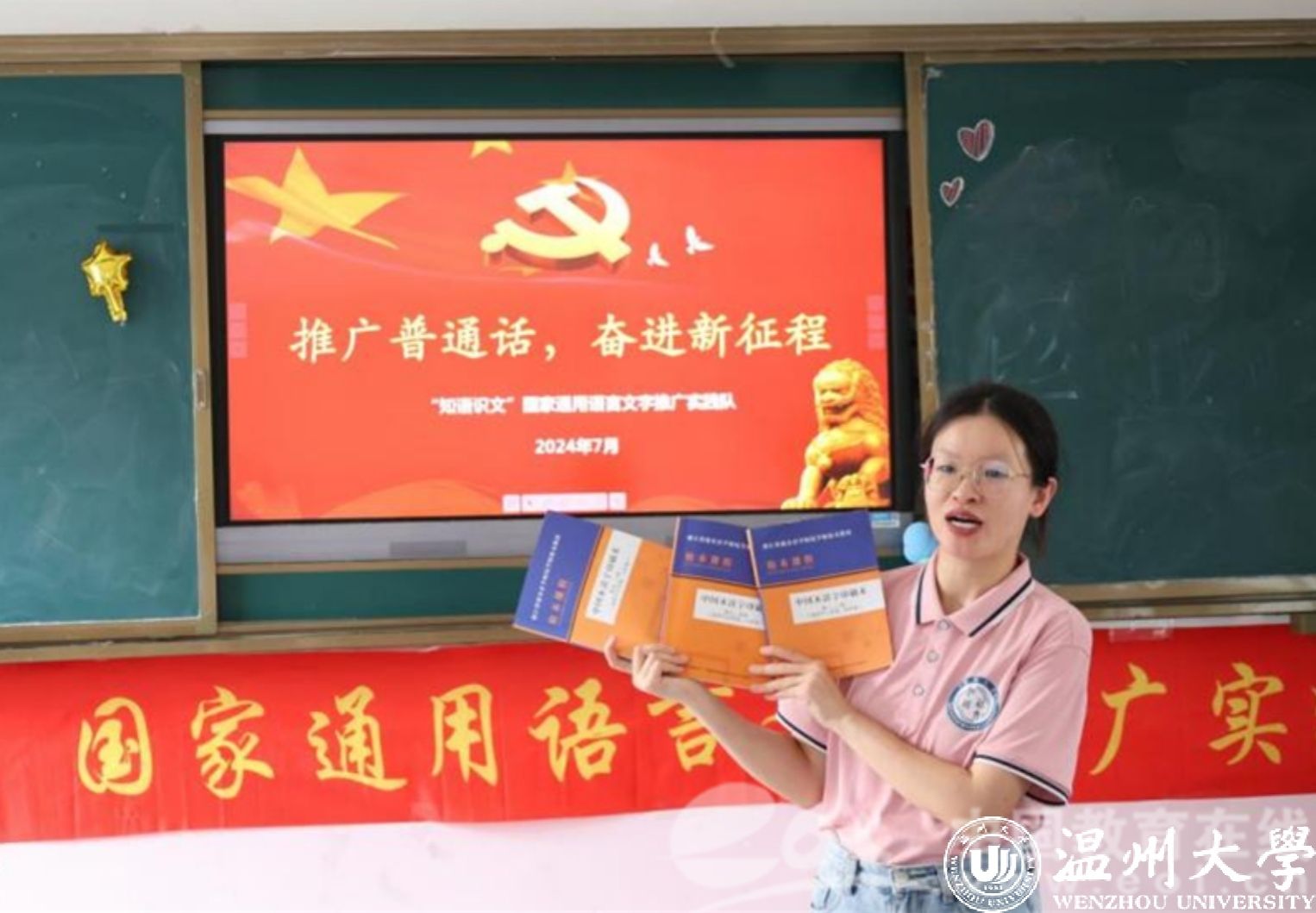 中国教育在线浙江站讯(实习编辑 赵瑞馨 通讯员 李慧婕 王桢惠)近日,温州大学“知语识文”国家通用语言文字推广(瑞安)实践队赴瑞安市平阳坑镇学校开展了一系列以探寻红色根脉、传承历史文化为主题的研学实践活动,旨在引领孩子们走出课堂,走进广阔的社会与自然,让“趣”味横生的实践成为他们难忘的成长记忆。