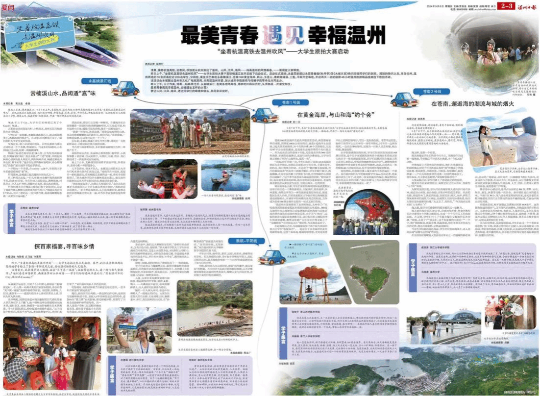 从白日到黑夜,从滨海到县城,学生们走过一个个苍南文旅的热门打卡地,通过他们的社交窗口,展示苍南餐桌上的海味、老街里的海韵、沙滩上的海景,以及高铁站的便捷、喷泉秀的绚丽、夜市摊的烟火,用年轻化的视角定格苍南最潮流的海、最懂生活的城。