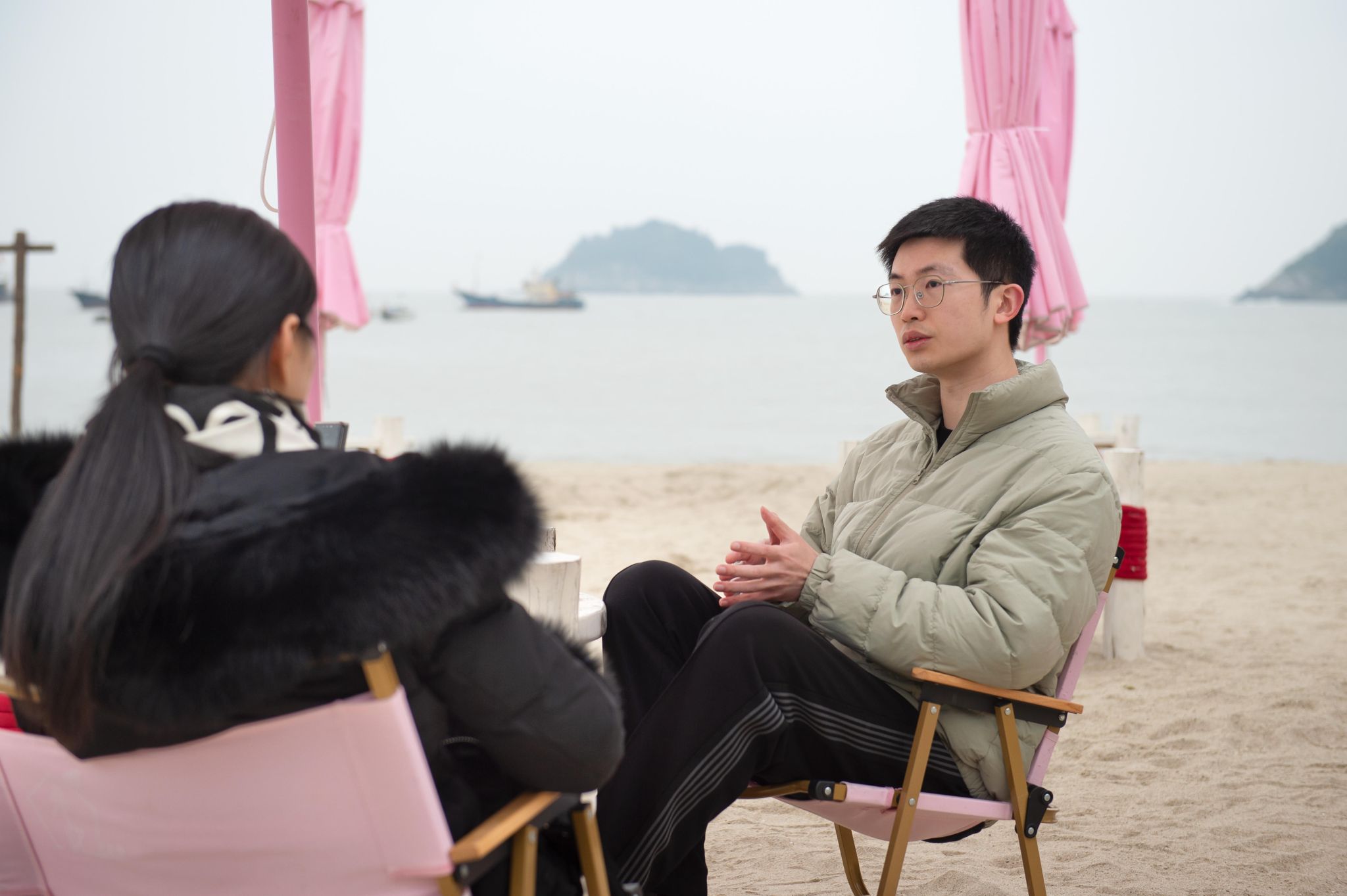 采访地选择在苍南炎亭沙滩,这里是小说《蛮与痴》的发生地,也是他从小生长的地方,腥咸的海风是熟悉的味。