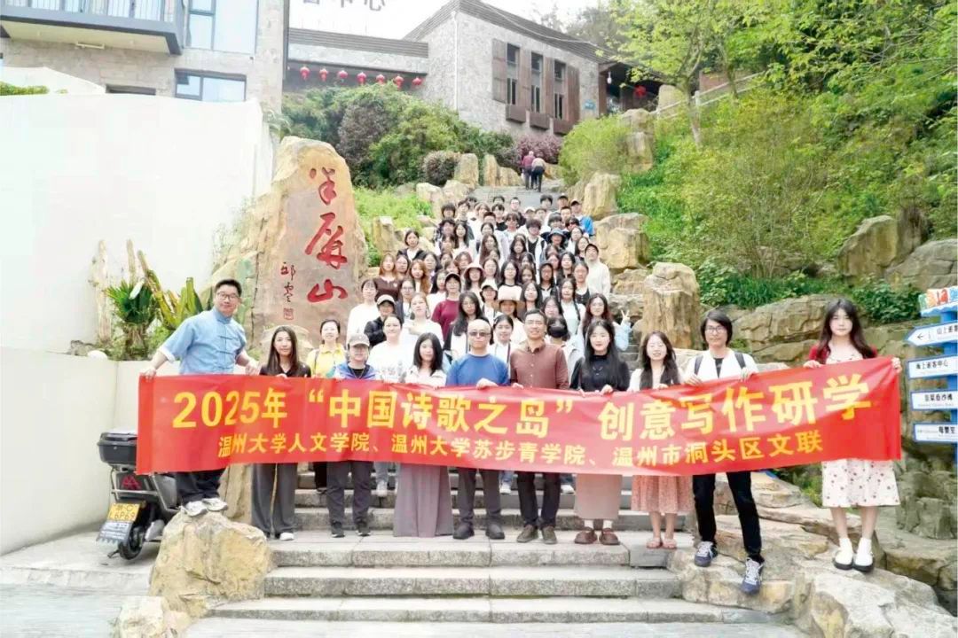 活动由诗人余退主持,汇聚了李广旭、刘卫东、张思静、孙国玲、王颖超等高校学者及上海、武汉等地文艺界代表,参与这场跨越海洋的文化对话。值得关注的是,主办方创新性地将文化传播与在地创作相结合——活动当日,温州大学师生还展开海岛创意写作专题研学,在望海楼纵览千年渔乡文脉,于半屏山感悟海蚀奇观,更在贝雕博物馆解码海洋文明的匠心传承。