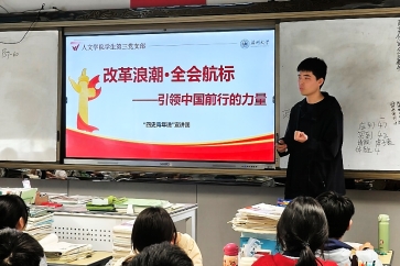 当温州大学球探体育 学生第三党支部的蔡雯雯、蒋泽冰等青年学子,在高校以“深入推进党的自我革命”为主题宣讲中国共产党的历史时,台下听众中有一双眼睛格外明亮——第三党支部的党员刘雪婷被宣讲中的故事和理念深深震撼。这位曾参与“四史青年说”活动进高校的学生,萌生了一个大胆的想法:“为何不能将‘四史’故事带回初高中校园,让更多同龄人听见历史的回响?”