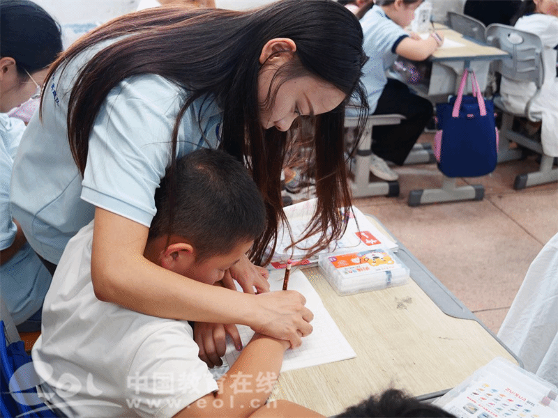 7月11日,实践队来到钱库镇第四小学,与孩子们一同推开了通往汉字世界的知识大门。