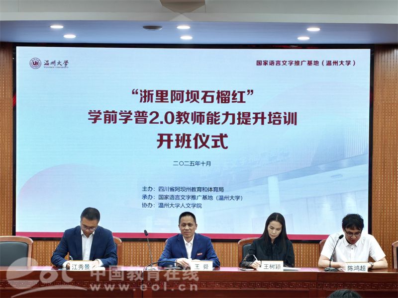中国教育在线浙江站讯(记者 陈显婷 通讯员 林心如)近日,“浙里阿坝石榴红”学前学普2.0教师能力提升培训项目在温州大学成功举行,来自四川省阿坝州8个县(市)的100名藏、汉、羌、彝和土家族老师参加学习。