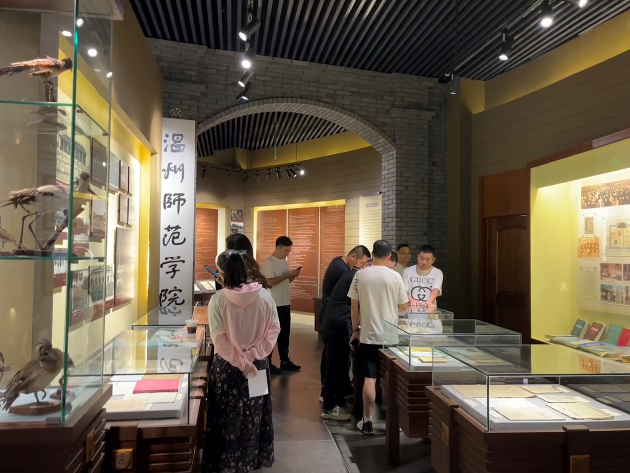 随后,校友们来到校史馆参观,重温学校九十年的办学历程,“走一遍”我们的来时路。墙上的一张张照片、一段段文字,展览柜里的一份份手写笔迹,都是温大九十年来蓄力成长、努力奔赴的痕迹。展品无言,却也无声地向校友们讲述着学校的辉煌过往。校友们纷纷感慨万千,心中的自豪和骄傲油然而生。