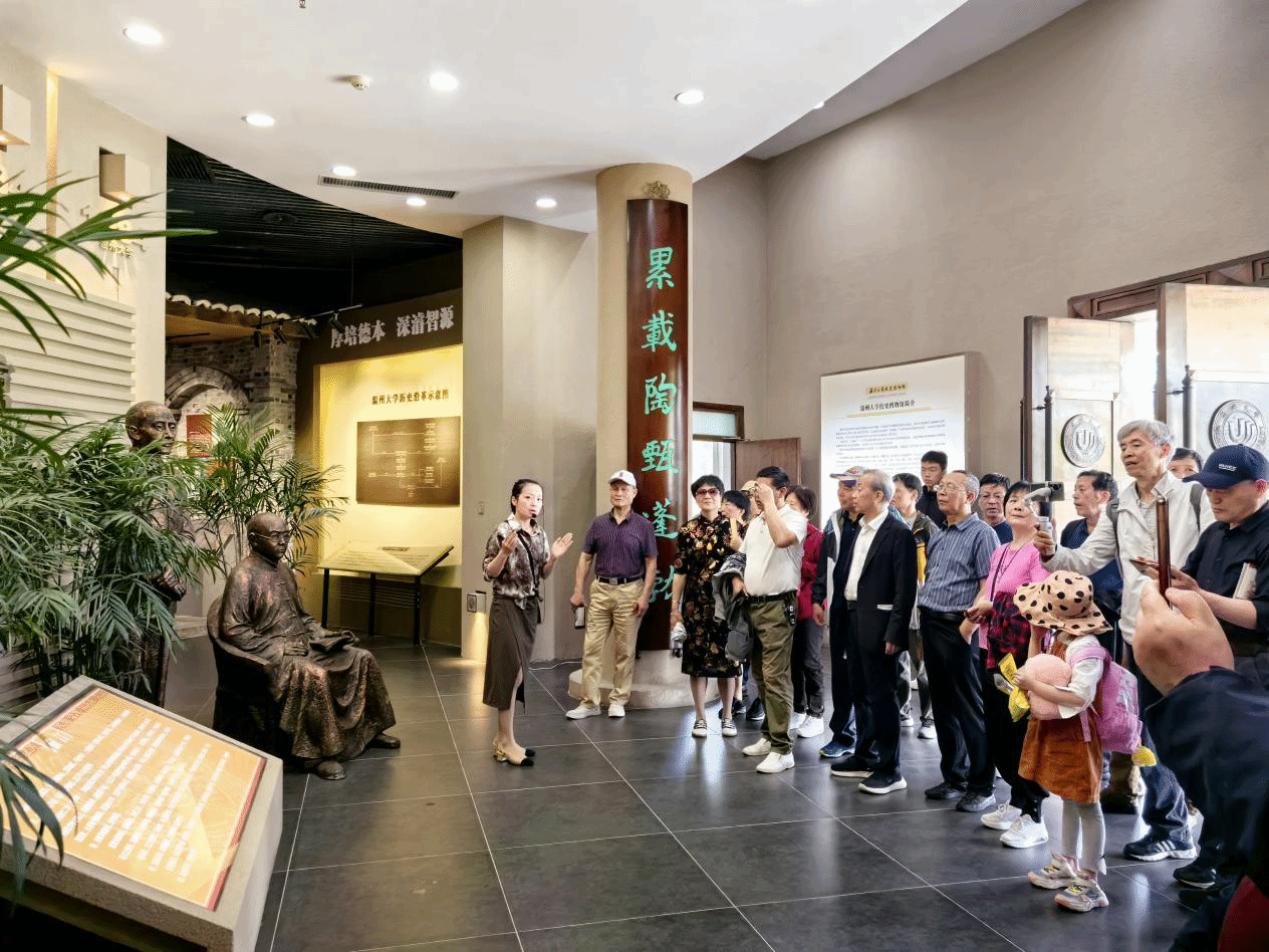 上午10点,82中文(1)班一行人抵达南校区国旗广场,校友办林孝祥带领校友们领略了国旗广场的风貌,讲述了国旗设计者曾联松的故事。校友们走进校史博物馆,和一张张老照片、一页页旧文稿,一起重温温大的来时路。忆往昔,栉风沐雨,弦歌不辍。观如今,与时俱进,赓续辉煌。让校友们惊喜的是,大家在校史馆找到了四十年前的自己,看着四十年前的彼此时,大家交谈热烈。“这是刚入学的时候,那时候还有头发的嘞!现在头发都没了。”“刚好我的毕业照找不到了,现在能补上了。”他们欣喜地与四十年前的自己合影,岁月虽远,但情正浓。校友们参观了温州大学发绣研究院,感受了国家级非物质文化遗产的独特魅力。