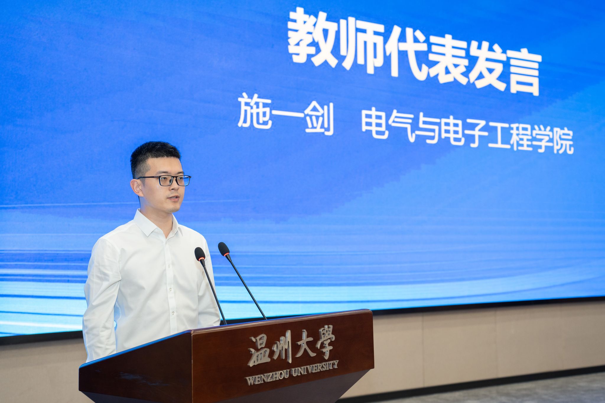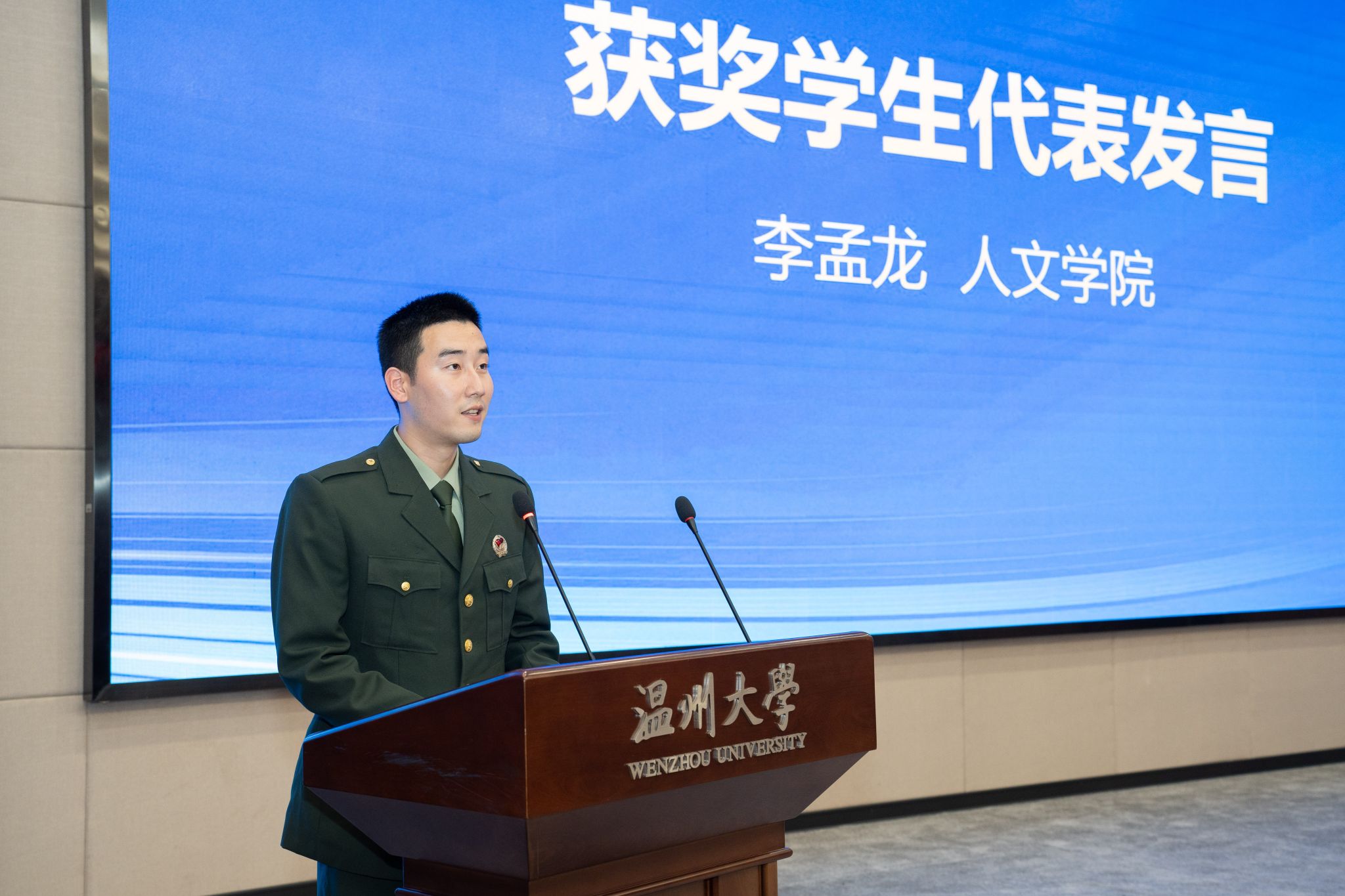 获奖师生代表围绕自身教学科研、学习成长、报国之志等方面做心得分享。电气与电子工程学院副教授施一剑老师感谢学校创造的优越环境和校友基金的大力支持,让他们能够在挑战和机遇中锻炼和提升自我。他表示所有获奖教师必将带着这份责任和使命以更加饱满的热情投入工作中,不忘初心,砥砺前行。数理学院舒璐莹同学分享了自己的学习经历,对校友的支持表达了衷心感谢,表示将继续踔厉奋发、追求卓越,回报母校、回报社会。球探体育 李孟龙同学在表达感恩校友设立专项基金支持学子成长的同时分享了自己曾作为一名中国人民解放军战士在西南边陲的军旅经历以及在校学习成长的心得体会,他始终保持“退伍不褪色”的信念,努力做有家国情怀的温大人文学子。