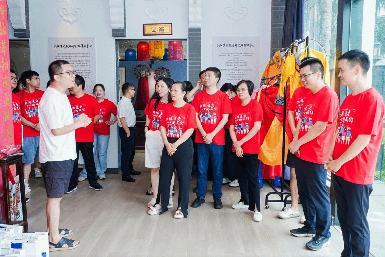寒暄过后,校友们在吴美富老师的引导下参观了浙江传统戏曲研究与传承中心,不仅领略了南戏悠久的历史文化,也感受到学院建设的日新月异与近年来取得的瞩目成绩,倍感欣喜。