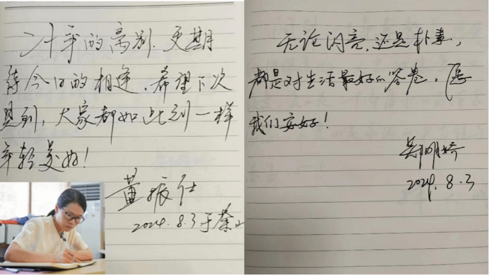 通过视频回溯了当年青春岁月之后,校友们按照曾经的学号依次上台,在20秒的时间内,向老师汇报自己的语文素养基本功,在黑板上一笔一划地写下自己的姓名,一句话介绍自己毕业后的工作经历,大家完美展现了自己扎实的师范技能及课堂把握的能力,老师们纷纷点头微笑以表赞许。