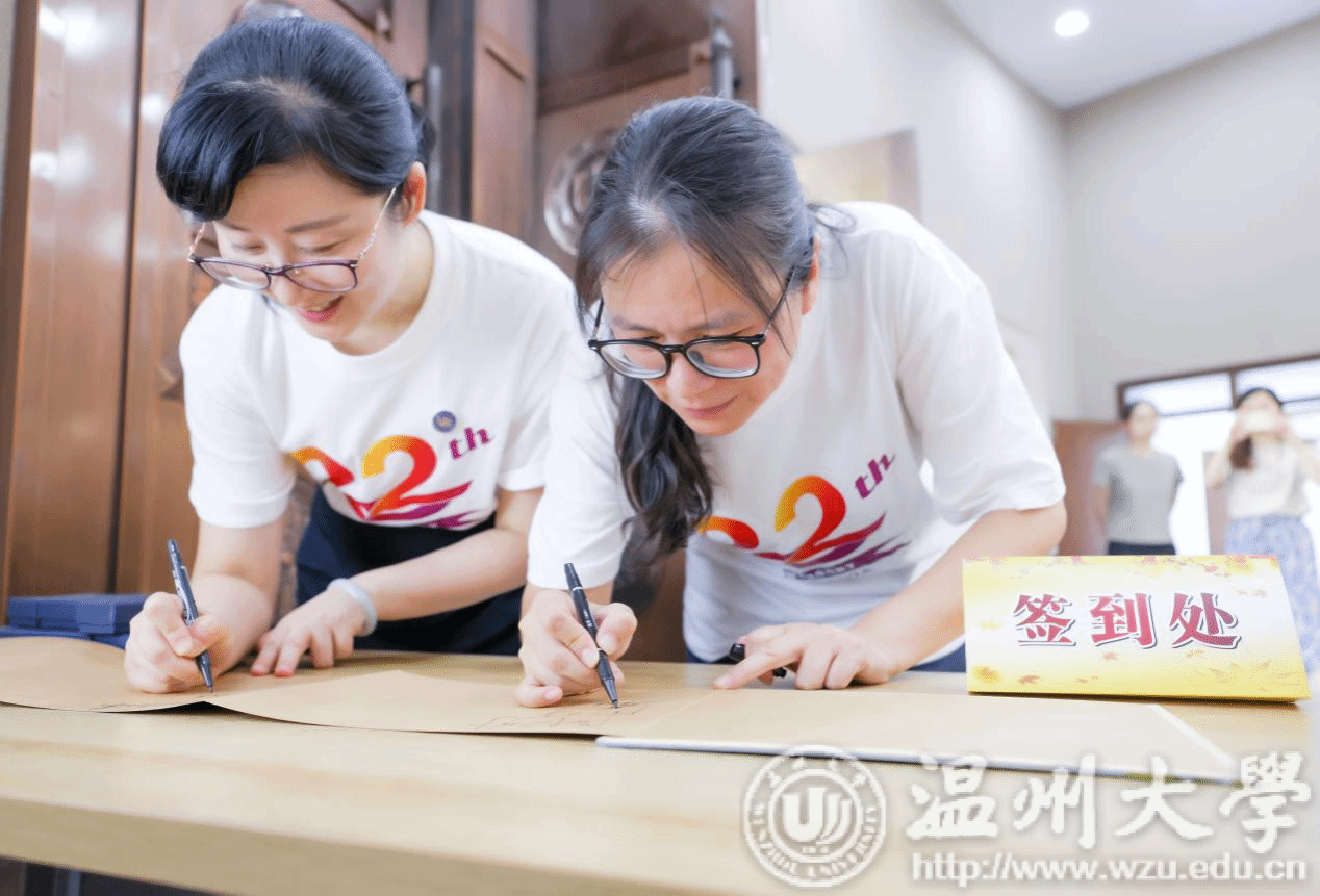 当天下午,校友们首先来到了温州大学南校区明心湖畔的校史博物馆,领取班服并合影留念。阔别悠悠二十二载,再次于母校相聚,每位校友的脸上都洋溢着重逢的喜悦。
