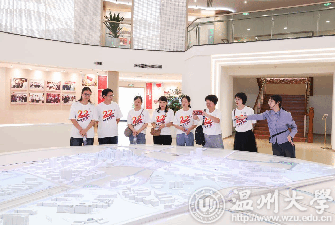 短暂的寒暄后,校友们开始参观温州大学校史博物馆。在讲解员的引导下,校友们的目光从承载着温州大学变迁历史的文字与照片上一一划过,沉浸其中,仿佛坠入了时间的罅隙,与温大一同从遥远的年代开始,再次回忆筚路蓝缕、历尽风霜的历史。
