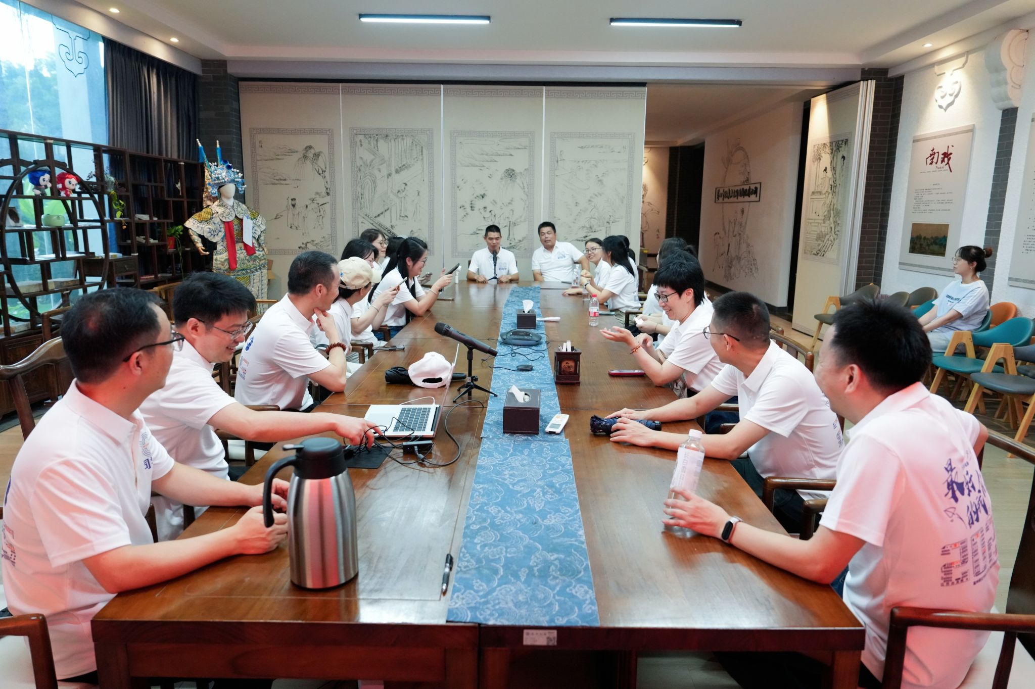 座谈会在浙江传统戏曲研究与传承中心会议室举行。校友胡志锋主持,他首先介绍了班级同学目前的分布情况,表达了对未能到场同学的挂念,并回顾了上一次聚会的难忘情景。大家共同感慨时光飞逝,当下每一次相聚都显得尤为珍贵,并约定未来聚会尝试更灵活自由的形式。在自由交流环节,校友们围坐一起,分享各自毕业后的工作经历、家庭生活近况以及对人生的感悟。话题常常引向对学生时代的怀念,交流氛围温馨而融洽。