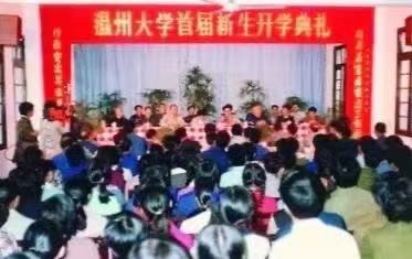 △1984年10月5日,温州大学隆重举行首届新生开学典礼,温州市四套班子主要领导出席中文秘书、工业与民用建筑两个专业八十二名学生入学仪式,苏步青院士发来贺电“趁春华育禾苗遵三个面向 待秋实出英俊展四化宏谋”