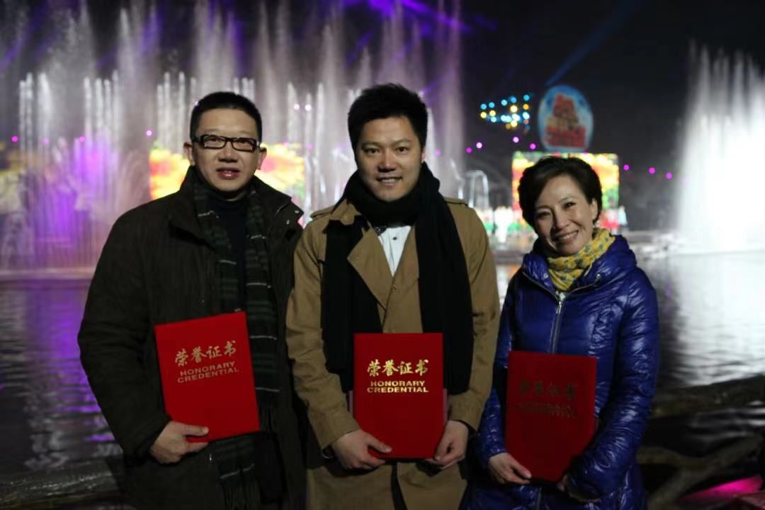 △2011年12月16日,陈振洲(左)获得第三届浙江省德艺双馨十大电视艺术工作者称号